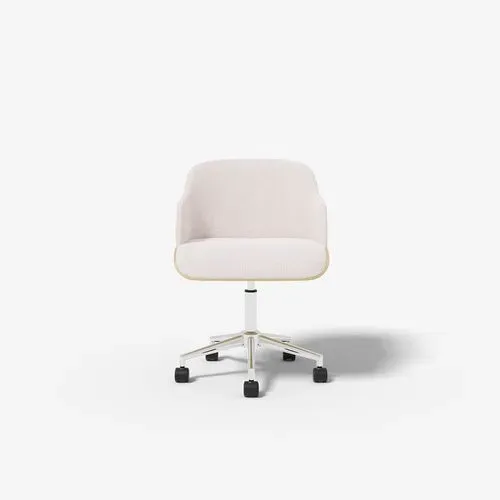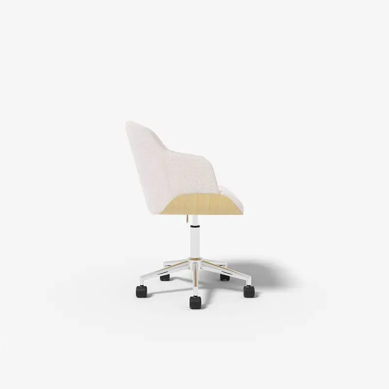 Embrace the Swedish Look in your home office with the Hedda chair. Perfect blend of light wood and natural colour chunky weave fabric. Includes gas lift height adjustment supported on a sturdy 5 spoke chrome base with wheels.