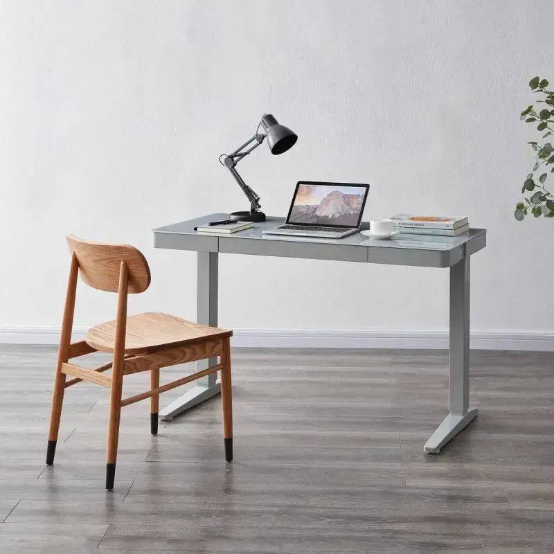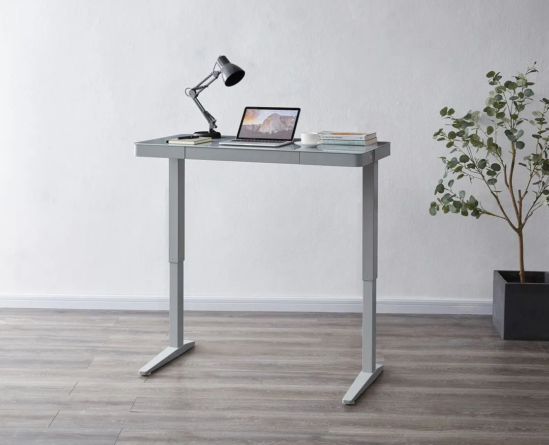 The Lana contemporary smart desk has been designed with flexible working in mind, incorporating the seamless electric height-adjustable function at the touch of a button. The rise and fall feature promotes a healthier working style within your home office, allowing you to switch from a sitting to a standing position between 74-120cm. Wireless charging technology is integrated into the desktop to charge your smartphone offering function and convenience. The Lana office desk features a light grey painted metal frame offering a sleek and ultra-modern design ideal for any room size. Includes power cable with UK compatible 3-pin plug (1 socket required).