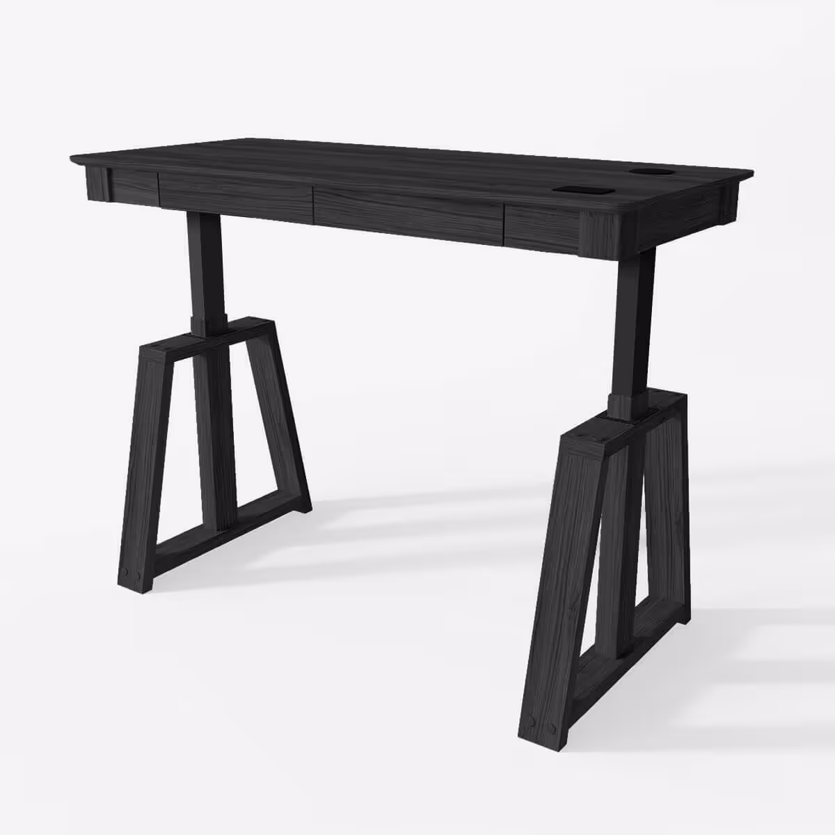 "Create a bold, modern workspace and save money when you buy these two designs together. This bundle pairs the Nora Height Adjustable Smart Desk with the Frida chair, combining smart functionality with a striking black wood-effect and black metal design for a sleek, contemporary home office. The Nora desk features smooth sit-stand height adjustment with a digital control screen, allowing you to easily switch between sitting and standing throughout the day. Integrated wireless charging, USB ports and hidden power sockets keep devices powered, while two drawers provide discreet storage. Paired with the Frida chair — featuring a curved upholstered back, plush seat and matte black metal base with smooth-rolling castors — the two designs work perfectly together to create a coordinated black-accent workspace."