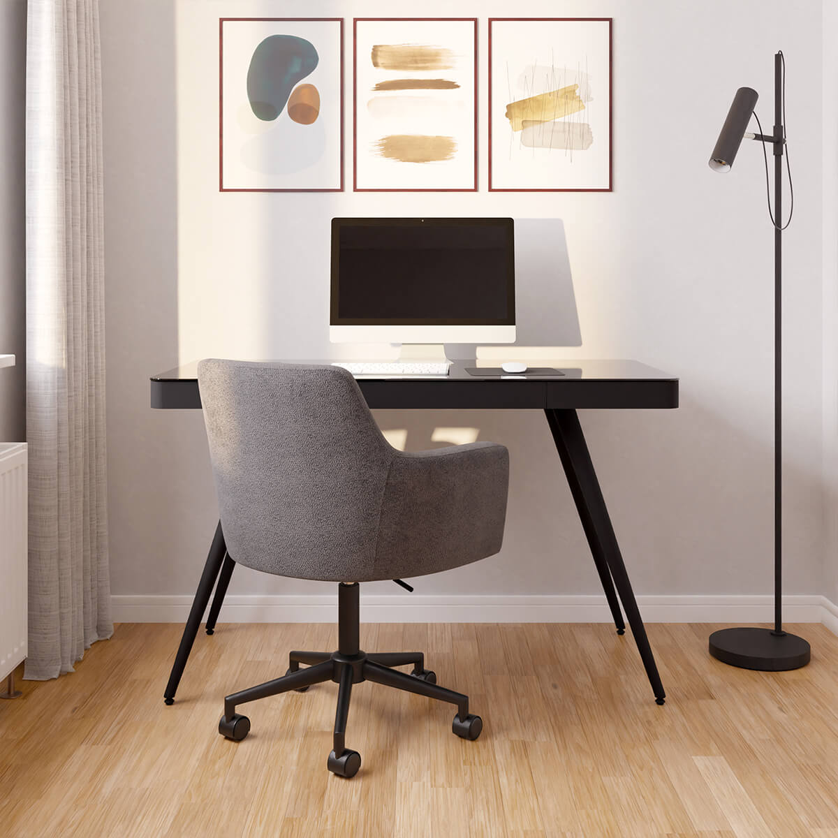The sit down set bundle - Tori 4.0 in Black and the Elsa Home Office Chair are the perfect combination of tech and modern style. The new and improved tech features within the Tori 4.0 include magnetic charging station ( UK exclusive ) and more powerful USB-A and USB-C charging points, capable of charging most small to medium sized laptops. Accompanied perfectly by the Elsa allowing you to Indulge in ultimate comfort. Extra thick cushioning and supportive armrests add an element of luxury to your office space.